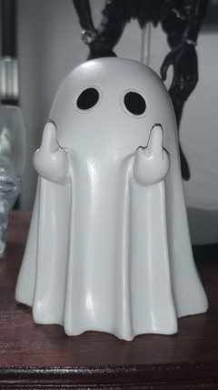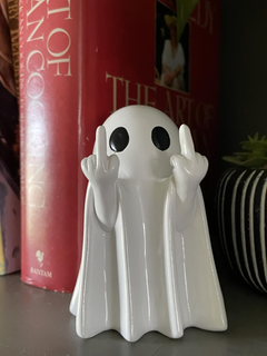 Atleast once every day I feel like hiding under a sheet and flipping off the world. I have found my spirit animal! This lil fella is awesome! I love Halloween, so I was excited when I saw a ghost figurine. However, when I saw the unique gesture I knew this had to be mine for year round decor. Solid and well made. No doubt a conversation piece!